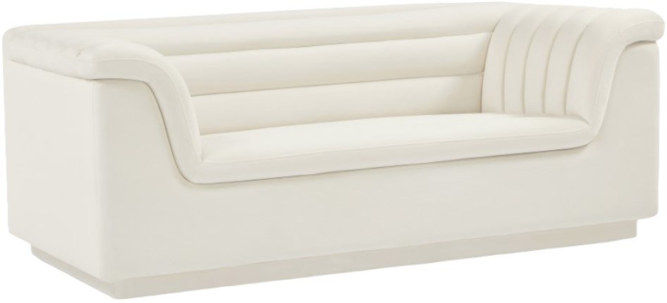 Add instant modern pizzazz to your living room or den with this Cascade velvet fabric loveseat. Upholstered from top to bottom in soft cream velvet upholstery, this chic loveseat adds contemporary flair to any space you choose to use it in.Read More