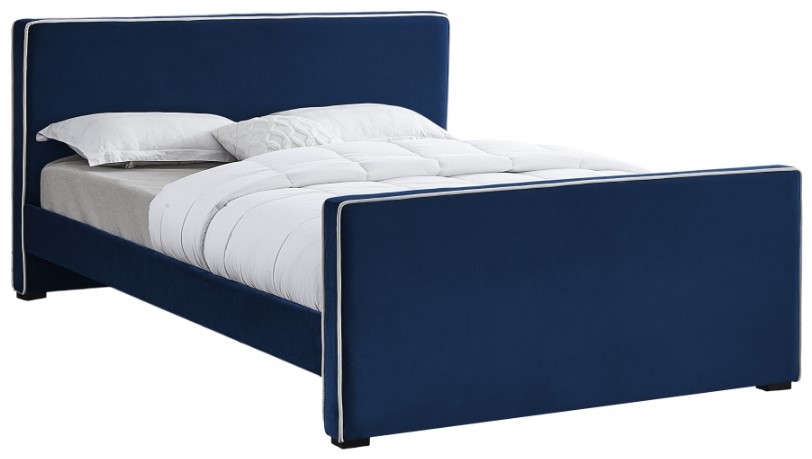Lend your bedroom an elegant look with this Dillard velvet bed. Live out your velvet fantasy with this bed's soft navy velvet upholstery that runs the full length of the bed from headboard to footboard and is trimmed with velvet piping in a contrasting color for a contemporary vibe.Read More