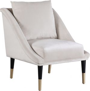 Personify elegance in your living area, den, or great room with this Elegante velvet chair. The chic, sleek cream velvet upholstery covering this chair is uber soft and comfortable, ensuring that it feels great against your skin. Wooden legs provide sturdy support and are painted black and topped with gold caps for a svelte finish.Read More