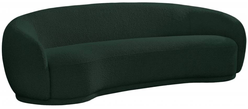 Rich green boucle fabric upholstery gives a soft touch against your skin and its deep plush cushion provides you with cozy support. Its rounded back is both chic and homey, with its contemporary design sure to add flair to your modern home.