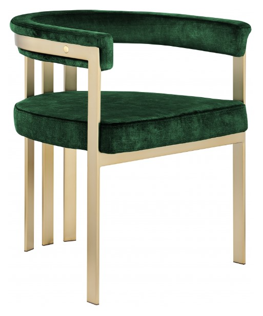 Turn your dining space into a contemporary haven with this Marcello green velvet dining chair. Its soft, high-end green velvet is soft for you to sit on, while its brushed brass iron frame ensures durability for years to come. Its curved back provides support while you sit and enjoy your meal.Read More