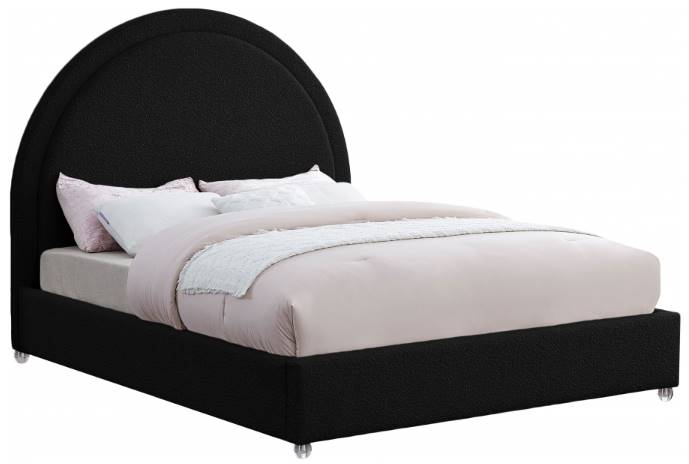 The star of the show is the bed's rounded headboard, which stretches out tall above you for a look that oozes regality and sophisticated charm. Acrylic legs give the bed a somewhat modern finish.