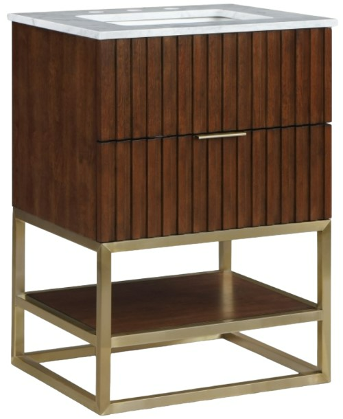 Organize your bathroom while upping your style quotient with this pretty Monad 24-inch bathroom vanity. A must for the contemporary bath, this unit features a rich walnut finish with birch wood veneer and a slatted design that's an instant eye-grabber. The ceramic sink is sized just right to serve it purpose without taking up too much room, and the drawer adds a convenient spot for storing bathroom necessities.Read More
