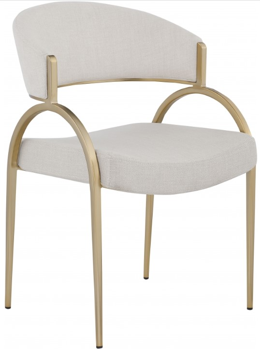 Give your dining room a touch of sophistication with this stunning beige Privet dining chair from Meridian Furniture. Its contemporary frame is comprised of iron, plate, foam, and fabric, with a brushed brass finish that shines.Read More