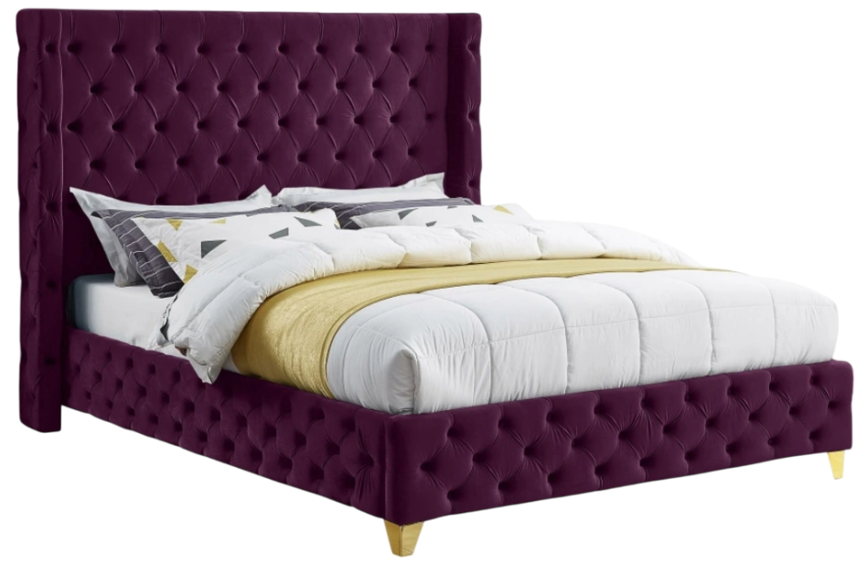Bring luxury to the forefront when you add this Savan velvet full-size bed to your room. Upholstered in rich purple velvet from the top of its super-high headboard down to its footboard, this beautiful bed features deep button tufting and a wingback detail to make it a true standout in your space.Read More