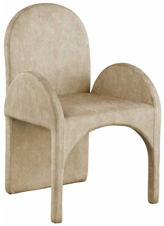 Featuring a luxurious beige velvet upholstery, this fully upholstered armchair offers comfort and support while you enjoy your meals. Its steel frame ensures durability, so you can enjoy the chair for years to come.Read More