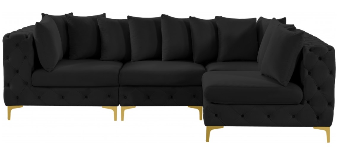 Lean back and relax on this Tremblay sectional. Featuring soft black velvet upholstery with deep button tufting, this sectional adds a bold touch to any living space. A complete set of gold and chrome legs are included, so you can change it up to suit your home décor.Read More