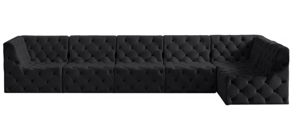 Elegant and eye-catching, the stunning black velvet Tuft Modular Sectional from Meridian Furniture is the perfect addition to any space. The deep button tufting adds a touch of sophistication to the sectional, making it a statement piece that will elevate any decor.Read More