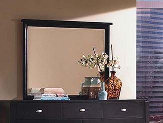 The Luna collection exudes a chic urban vibe. Accent corner trims on the furniture and grid panel bed accent the sleek clean lines of the furniture. Top drawers of the dresser, chest, and nightstand are lined with felt to protect delicates. Brushed silver handles gleam against the deep black cherry finish.