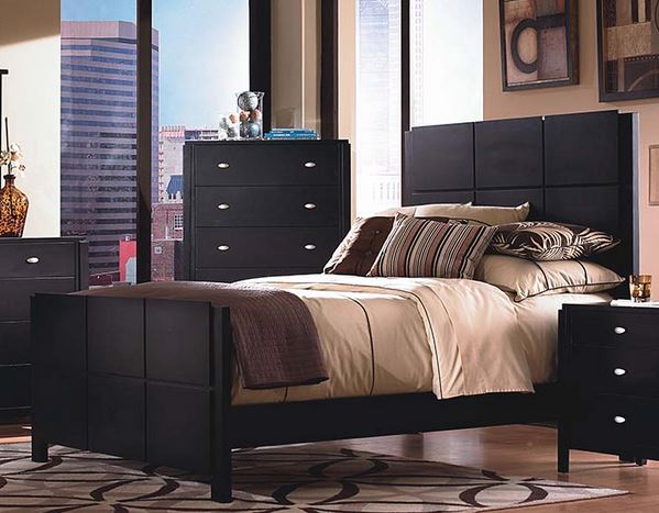 The Luna collection exudes a chic urban vibe. Accent corner trims on the furniture and grid panel bed accent the sleek clean lines of the furniture. Top drawers of the dresser, chest, and nightstand are lined with felt to protect delicates. Brushed silver handles gleam against the deep black cherry finish.