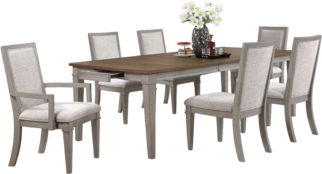 *7-Piece dining set only, any other products that may be displayed are sold separately. Images may not represent the actual size and color in images may differ in person. See the store for the actual color or finish.