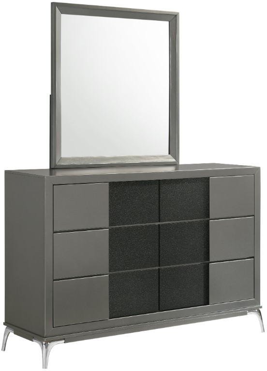 The Nocturne dresser and mirror set combines modern elegance with functional design. Featuring a sleek slate finish, spacious drawers, and a matching mirror, it offers ample storage and sophisticated style for any bedroom.Read More