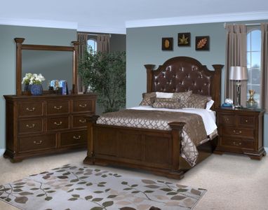 The Timber City collection showcases a bold and traditional style with flawless detail. Chamfered edges, framed side panels, framed drawer fronts, and bracket feet accent the solid appeal of the suite. Functional features include felt lined top drawers and optional underbed storage.The collection is constructed with basswood solids and other veneers with a classic sable finish.
