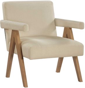 Effortless modern design meets exceptional comfort in the Helen chair. Featuring a sleek silhouette, this armchair showcases a cream polyester cover complemented by light chestnut wood legs in an angular design for a warm and inviting profile. The cushioned seat, padded back, and armrests ensure maximum comfort, making it perfect for dining, office work, or relaxing.Read More