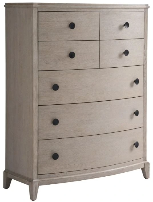 The seven-drawer Coalesce Drawer Chest chest marries functionality with style, featuring a sophisticated rolling fog finish and complemented by elegantly rounded drawer pulls, making it an impeccable addition to any refined bedroom ensemble.Read More