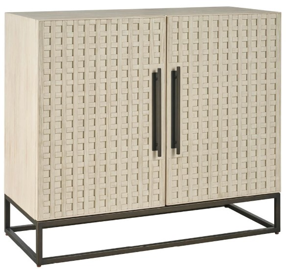 The river rock hall chest combines architectural detail with practical storage. Featuring the collection's signature latticework design and a light and airy river rock finish, its two doors open to reveal ample space for organizing essentials.Read More