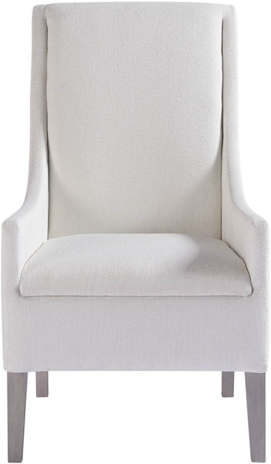 Bring grace and texture to your dining area with the Midtown Host Arm Chair, featuring a delightful silhouette with a high back, angled armrests, sleekly tapered legs, and upholstered in a lush Hyde Snow performance fabric.Read More