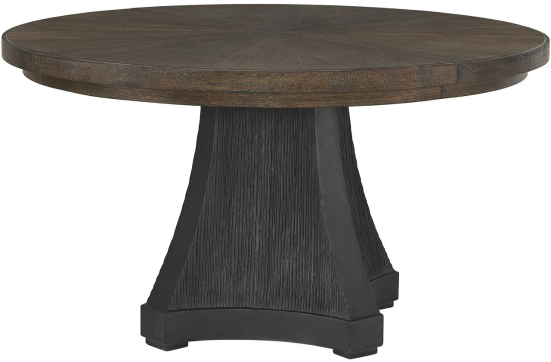 54-inch round dining table with a rich cocoa wood top and radial pattern