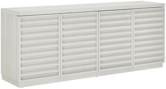 The shoreline credenza features distinctive louvered doors that evoke coastal shutters. This credenza offers ample interior storage with adjustable shelves and wire management, making it perfect for dining rooms or media spaces in your coastal-inspired home.Read More