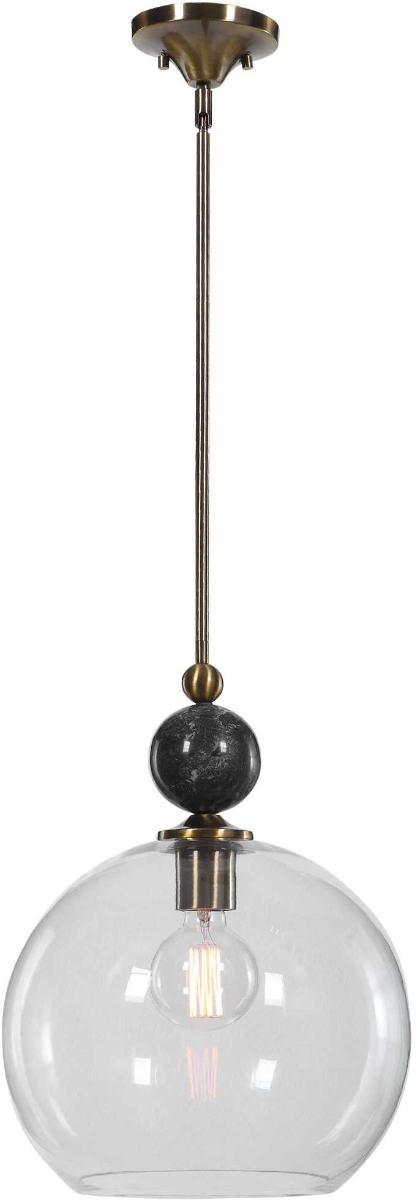 Topped with a rich black marble ball, this 1 light pendant features an oxidized aged brass finish enhancing the simple but elegant line. Finishing off this look is a clear 13 inch diameter glass globe.Read More