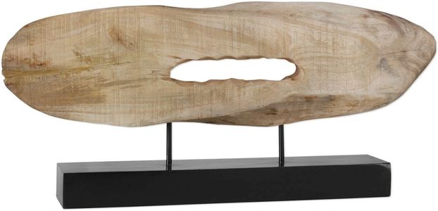 Natural mango wood log displayed on a matte black base. Each piece is handcrafted making it unique. Sizes will vary. Cracks and variations in the grain are normal.Read More